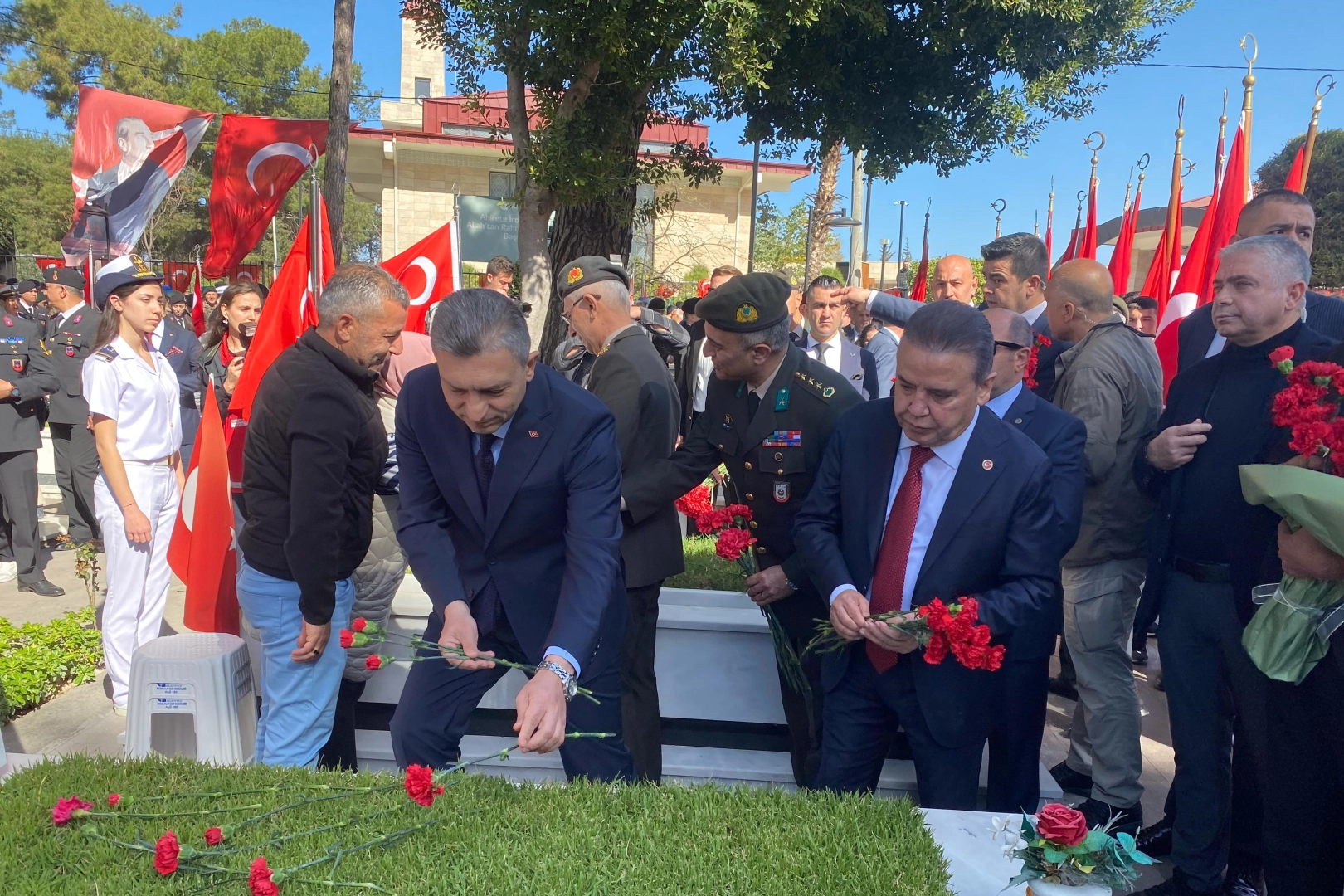 Vali Şahin, Şehitlikte Çelenk Sunumu YaptıAntalya Valisi Hulusi Şahin, törene katılarak, Uncalı Şehitliği’ndeki Şehitlik Anıtı’na çelenk sundu. Tören, saygı duruşu ve İstiklal Marşı ile başladı. Ardından günün anlam ve önemini belirten bir konuşma yapıldı. Vali Şahin, Şehitlik Şeref Defteri'ni imzalayarak, şehitlere olan minnetini ifade etti. Şahin, şehitlerin fedakarlıklarını asla unutmayacaklarını belirterek, "Sizlerin emaneti olan bu güzel vatanı, birlik ve beraberlik içinde yaşatmaya devam edeceğiz" dedi.