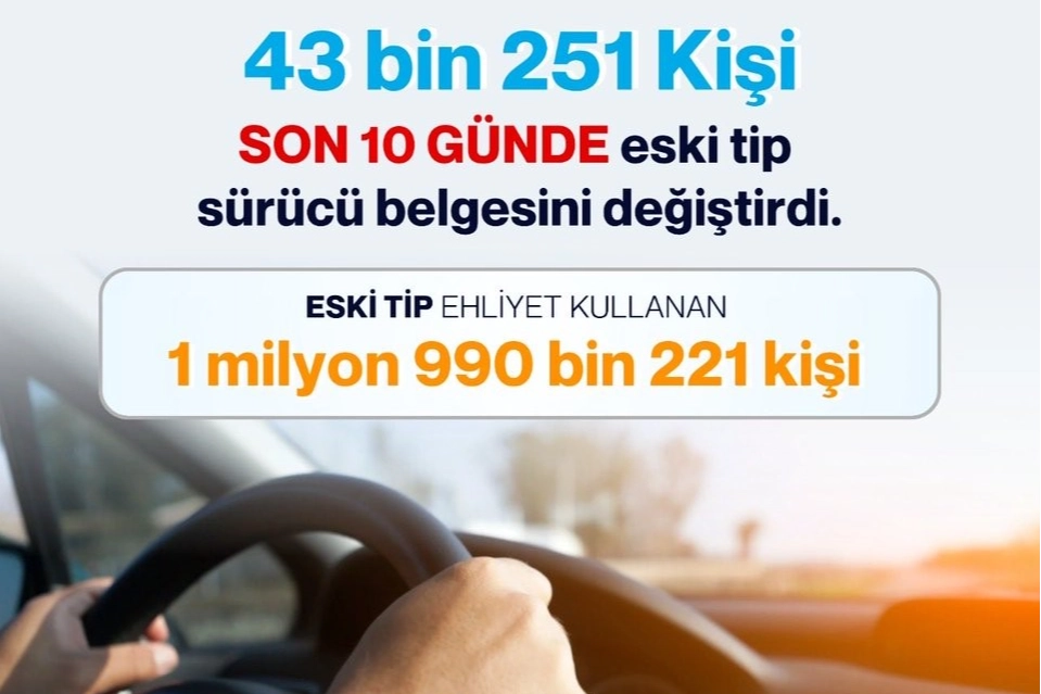 1 MİLYON 990 BİN KİŞİ HALA ESKİ EHLİYET KULLANIYORBakan Yerlikaya, ekim ayı içerisinde sadece 43 bin 251 kişinin eski tip sürücü belgesini yenilediğini, buna karşın 1 milyon 990 bin 221 vatandaşın hâlâ eski tip ehliyet kullandığını açıkladı.