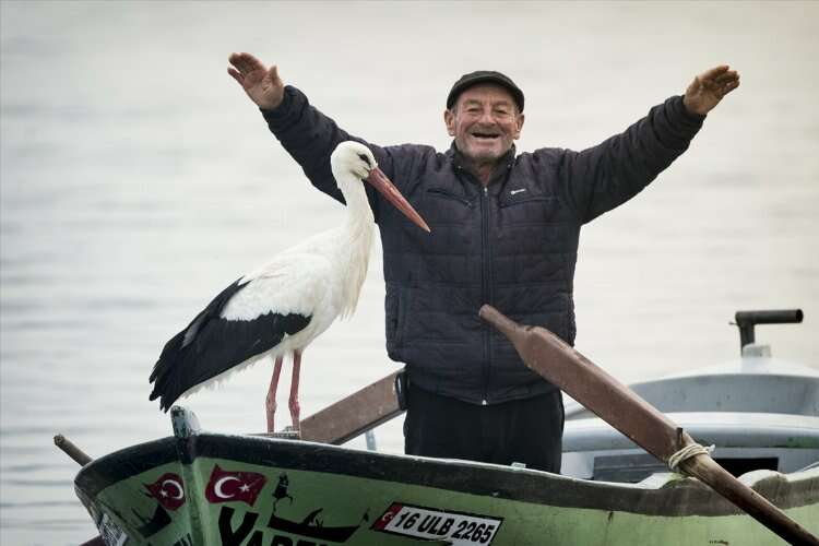 Bursa'nın Karacabey ilçesindeki Uluabat Gölü'nün kıyısındaki Eskikaraağaç Mahallesi'nin simgesi olan ve balıkçı Adem Yılmaz (68) ile bilinen dostluğu ülke sınırlarını aşan Yaren Leylek, bölge turizmini hareketlendirdi.