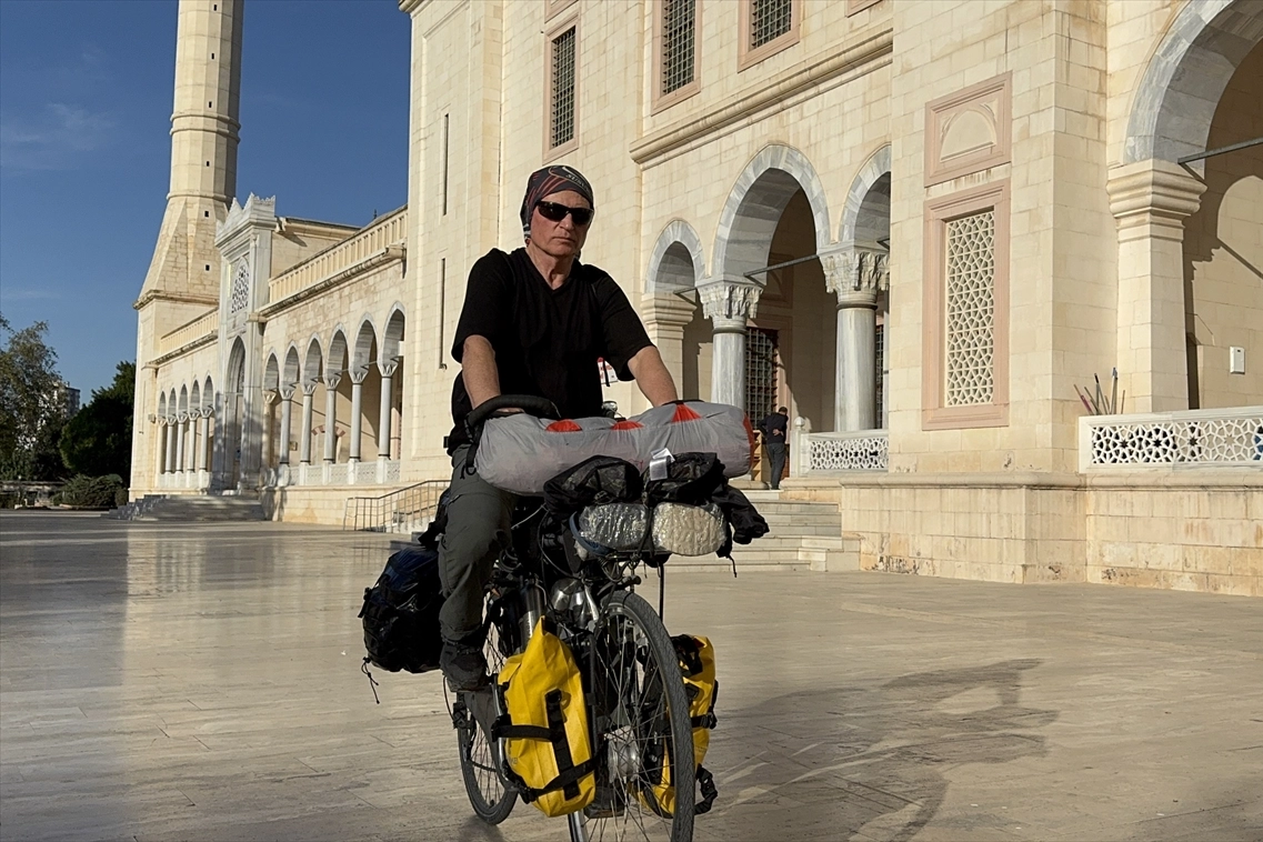 Yaklaşık 10 gün önce Balıkesir’den yola çıkan 68 yaşındaki Şener, bugüne kadar 900 kilometre pedal çevirerek Adana’ya ulaştı. Merkez Seyhan ilçesindeki Sabancı Merkez Camisi’ni ziyaret eden Şener, burada namaz kılıp dinlendi.