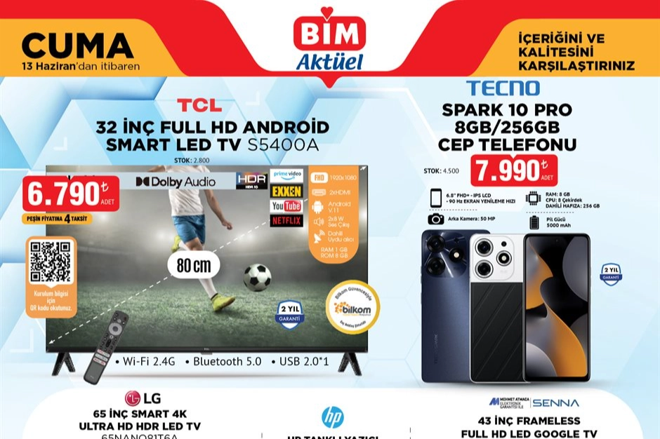 İndirim fırsatlarını takip edenler için BİM 13 Haziran aktüel kataloğu netleşti. Bu cuma, BİM mağazalarında elektronik eşyalardan motosiklet ekipmanlarına, giyim ürünlerinden kamp malzemelerine kadar geniş ürün yelpazesi alıcılarını bekliyor.