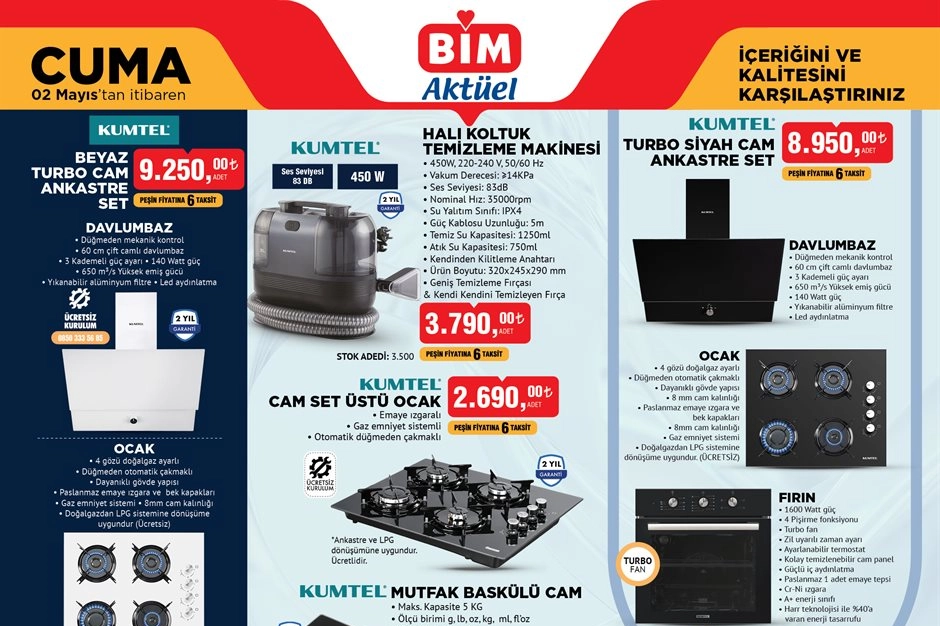 BİM 2 MAYIS CUMA AKTÜEL ÜRÜNLER LİSTESİ: