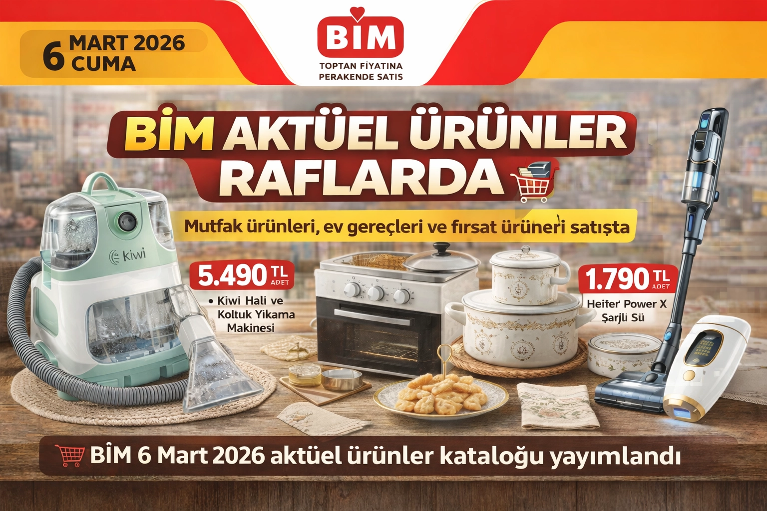 Türkiye’nin en çok takip edilen indirim kampanyalarından biri olan BİM aktüel ürünler kataloğu, 6 Mart 2026 Cuma günü için yayımlandı. Bu hafta satışa sunulacak ürünler arasında küçük ev aletleri, kişisel bakım cihazları, mutfak ekipmanları ve ev tekstili ürünleri yer alıyor. Sınırlı stokla satışa çıkacak ürünlerin bazı mağazalarda kısa sürede tükenmesi bekleniyor.