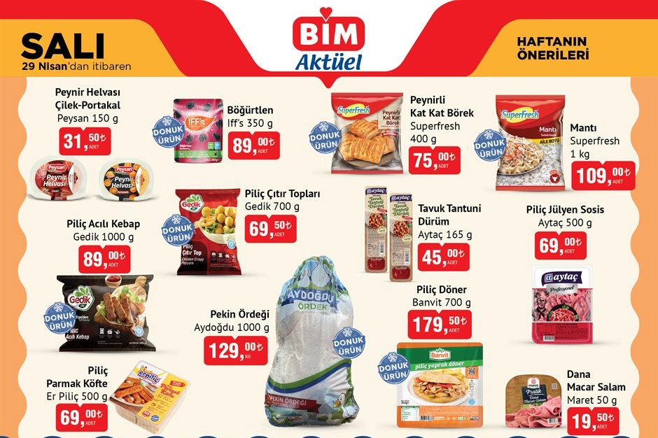 BİM, 29 Nisan – 2 Mayıs 2025 tarihleri arasında geçerli olacak aktüel ürünler kataloğunu yayınladı. Elektrikli bisikletler, motosikletler, kamp malzemeleri ve temel tüketim ürünlerinde dikkat çeken fırsatlar müşterilerin ilgisini çekiyor. Yaz mevsimine hazırlık yapmak isteyenler için ideal seçenekler sunan BİM rafları dolup taşıyor.