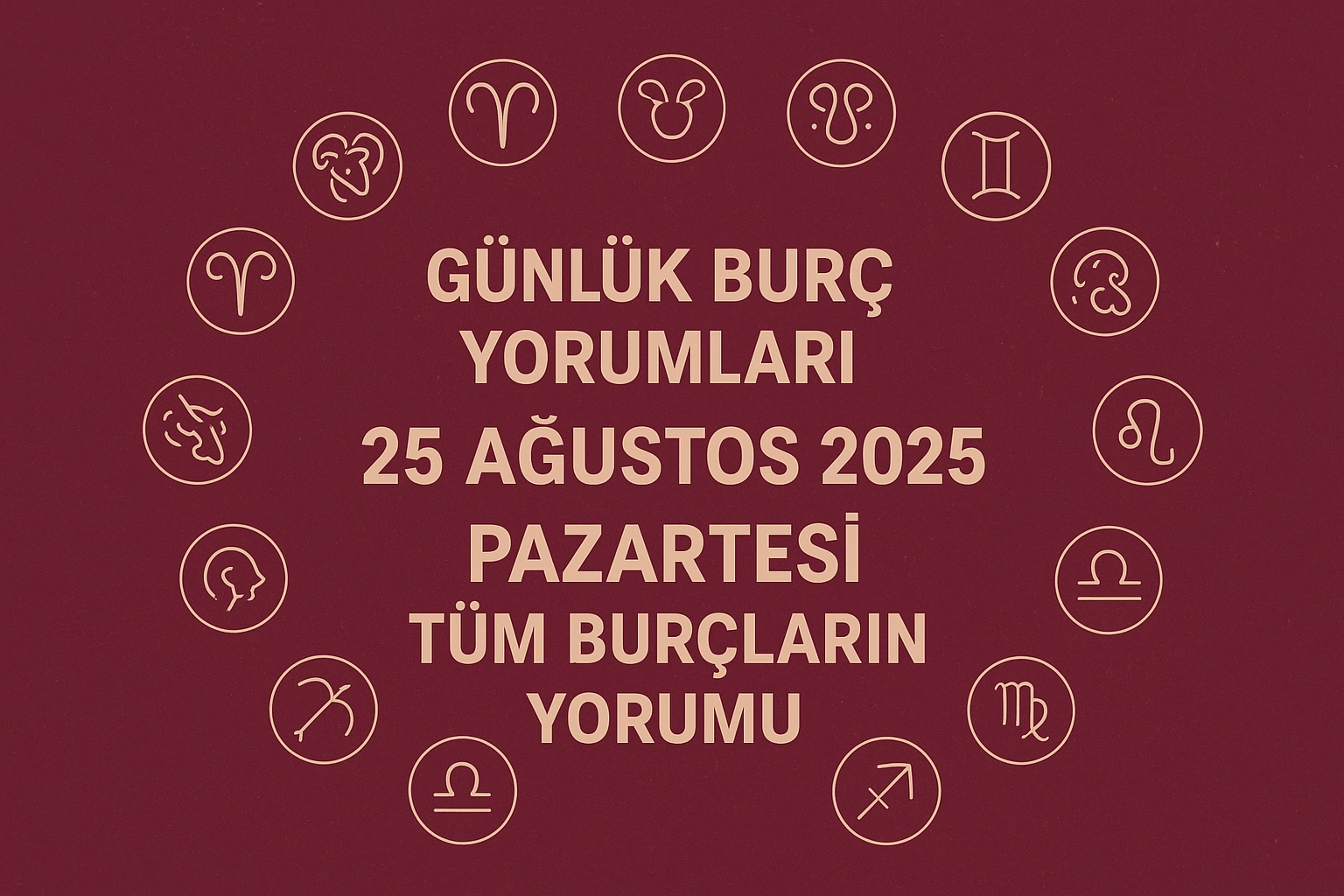 25 Ağustos 2025 Pazartesi günü burçları aşk, kariyer, sağlık ve para konularında neler bekliyor? Koç’tan Balık’a tüm burçlar için hazırladığımız günlük burç yorumlarıyla güne başlamadan önce günün enerjisini yakalayabilirsiniz. Bugün hangi burç sürprizlerle karşılaşacak, kim için yeni fırsatlar kapıda? İşte burcunuza özel ipuçları ve öneriler…