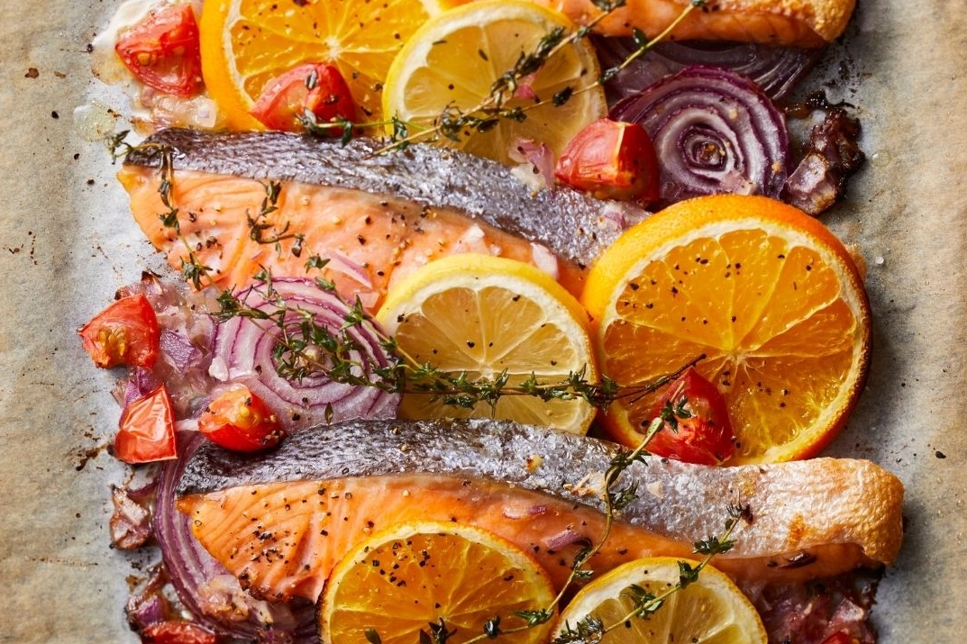 4 dilim somon fileto 2 yemek kaşığı zeytinyağı 1 limon suyu 1 tatlı kaşığı tuz Yarım tatlı kaşığı karabiber 1 tatlı kaşığı kekik 2 diş sarımsak (ezilmiş) 1 dal taze biberiye (isteğe bağlı)