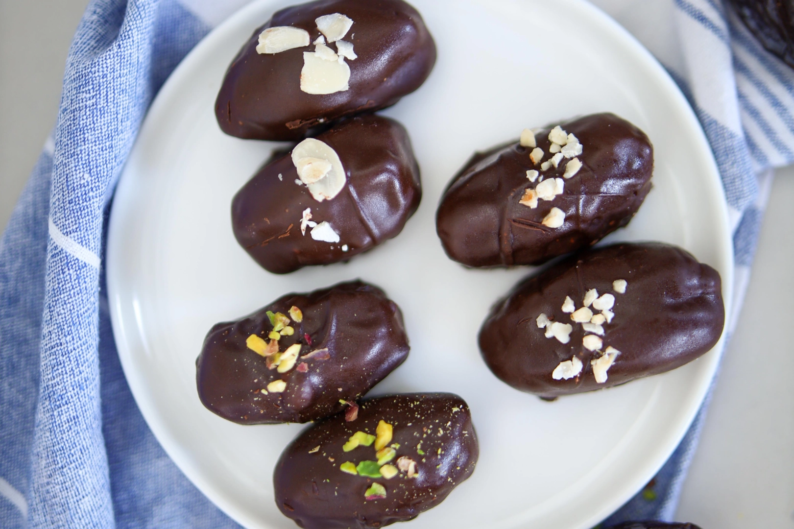 Hazırladığınız hurmaları kısa süre buzdolabında bekleterek çikolatanın donmasını sağlayın.