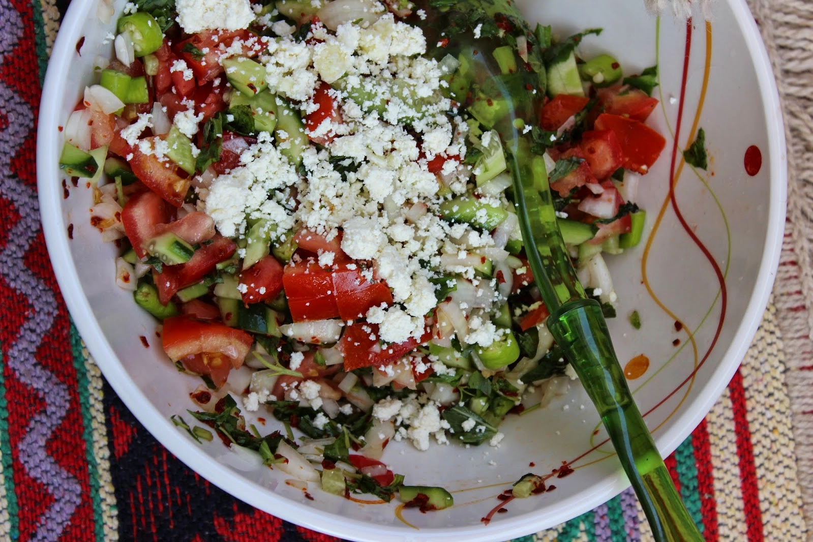 Üzerine zeytinyağı ve baharatları ekleyin, iyice karıştırın.