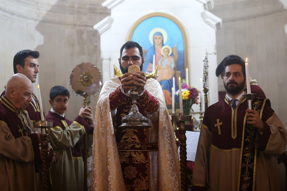Hatay'ın İskenderun ilçesindeki Surp Karasun Manuk Ermeni Kilisesi'nde ayin yapıldı.