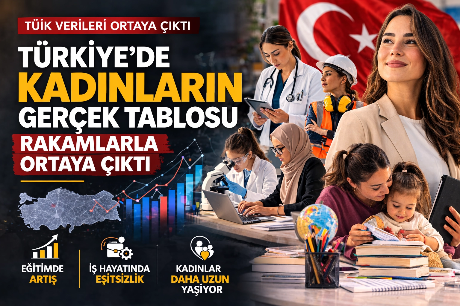 TÜİK tarafından yayımlanan “İstatistiklerle Kadın 2025” raporu Türkiye’de kadınların demografik, sosyal ve ekonomik durumuna ilişkin dikkat çeken veriler sundu. Rapora göre Türkiye nüfusunun neredeyse yarısını kadınlar oluştururken, kadınların yaşam süresi, eğitim düzeyi ve toplumsal hayattaki temsili son yıllarda artış gösterdi. Ancak iş gücüne katılım, istihdam ve yönetici pozisyonlarında kadın oranının hâlâ erkeklerin gerisinde kaldığı görüldü.