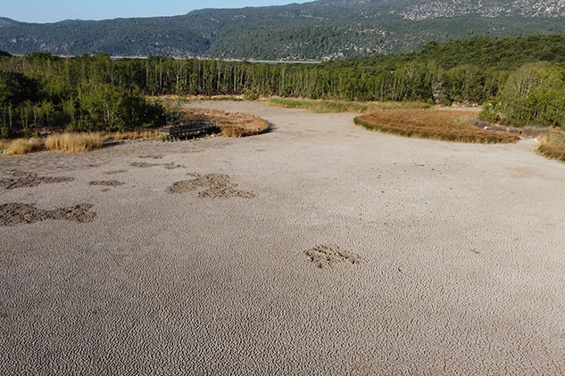 Bir zamanlar yüzlerce canlıya ev sahipliği yapan göl, kuraklığın etkisiyle küçüldü. Suyun kaybı sadece gölü değil, çevresindeki tüm ekosistemi de yok olma tehlikesi ile karşı karşıya bırakıyor. Büyük oranda suların çekildiği alandaki derin çatlaklar kuraklığın boyutunu gözler önüne seriyor.
