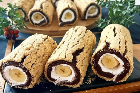 Dilimleyip muzları yerleştirin, sararak şekil verin.
