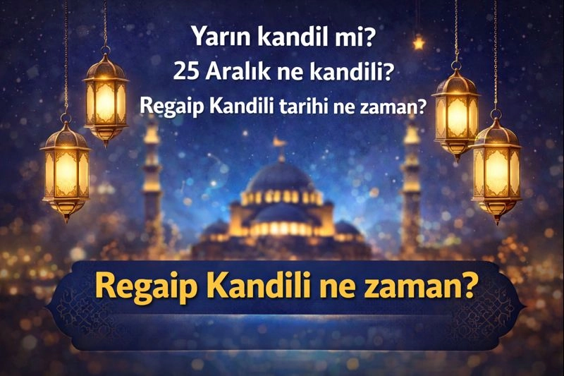 25 ARALIK NE KANDİLİ?Vatandaşlar, hafta ortasına gelinmesiyle birlikte arama motorlarında "25 Aralık ne kandili?" ve "Bugün kandil mi?" sorularına yanıt aramaya başladı. Diyanet İşleri Başkanlığı Vakit Hesaplama Bölümü'nün "vakithesaplama.diyanet.gov.tr" adresinde yer alan bilgilere göre; 25 Aralık 2025 Perşembe günü Regaip Kandili olarak takvimlerde yerini aldı.