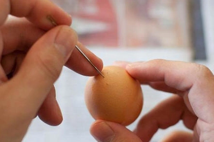 Altına delik açınYumurtaları mükemmel bir şekilde haşlamak için yapmanız gereken ilk şey, yumurtanın alt kısmına ince uçlu bir iğne ile küçük bir delik açmaktır. Bu basit işlem, haşlama sırasında yumurtanın çatlamasını önlemeye yardımcı olur.