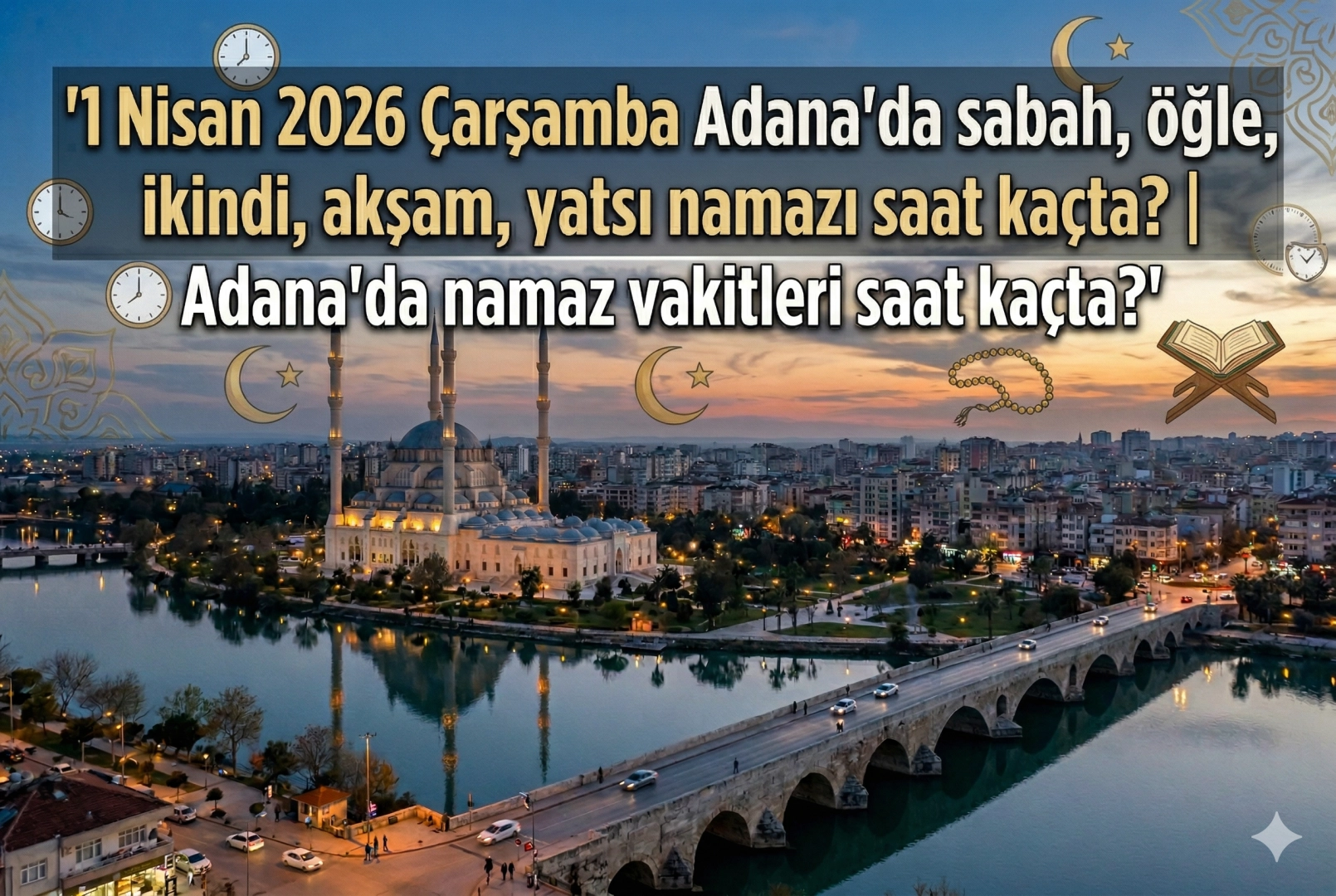 Adana namaz vakitleri 1 Nisan 2026 ÇARŞAMBA || Akli dengesi yerindeki tüm erişkin Müslümanlara günde 5 kez farz kılınan ve İslamiyet'in şartlarından biri olan namaz, kulun Allah'a en yakın olduğu anlardan biri olarak kabul edilir. Abdest alınması ve kıblenin belirlenmesinin ardından, Güneş'in dünyaya konumuna göre belirlenen namaz saatleri, vatandaşlar tarafından sıklıkla araştırılan konular arasında yer alıyor. İşte 1 Nisan 2026 Çarşamba Adana ezan saatleri, sabah, öğlen, ikindi, akşam, yatsı namaz vakitleri...