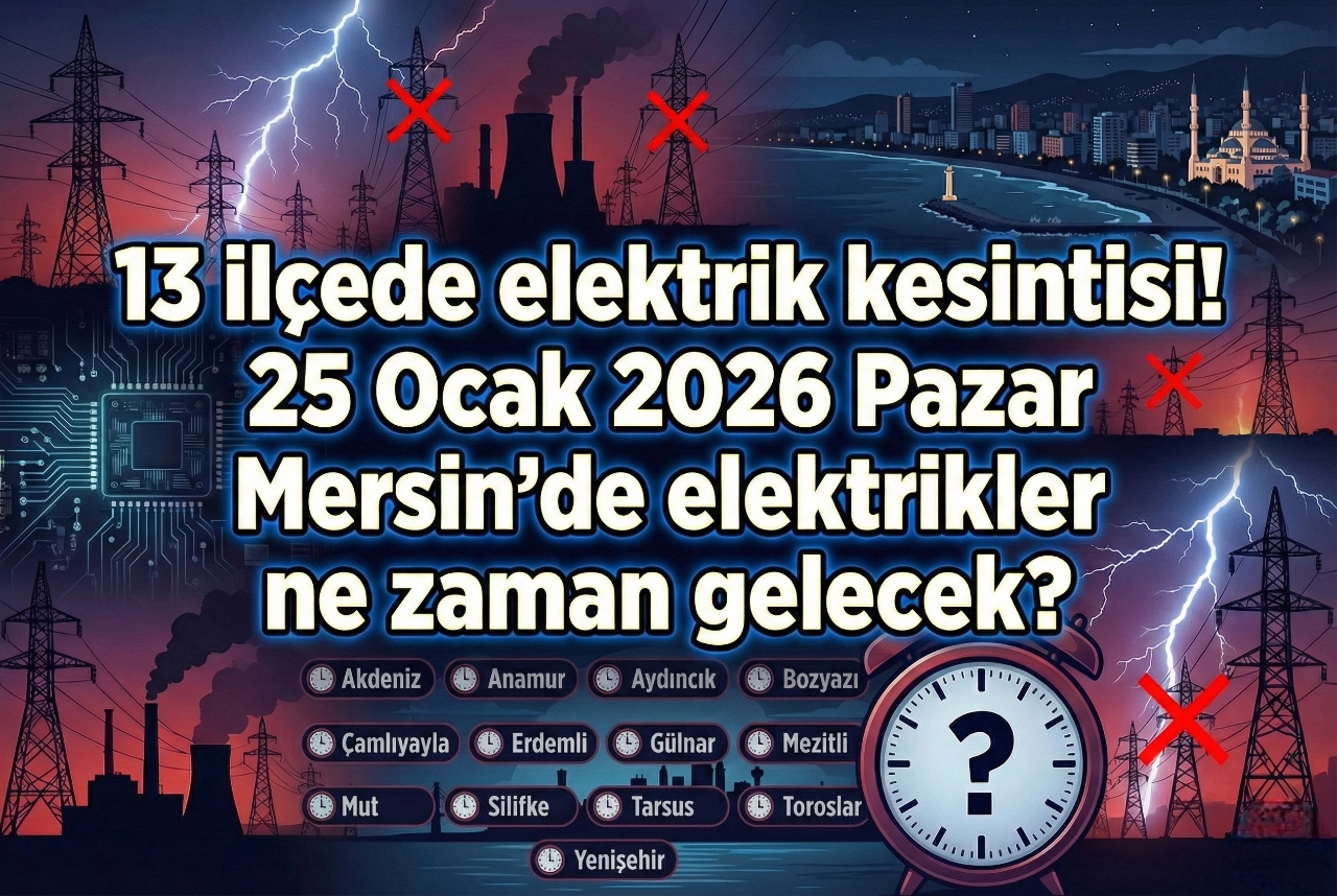 Mersin’de 25 Ocak 2026 Pazar günü, Toroslar Elektrik Dağıtım A.Ş. (Toroslar EDAŞ) tarafından yürütülecek planlı bakım, onarım ve enerji iletim hattı yenileme çalışmaları kapsamında kent genelinde birçok ilçede elektrik kesintisi yapılacak. Sabah saatlerinde başlayacak çalışmalar nedeniyle bazı mahallelerde gün boyunca elektrik verilemeyecek. Toroslar EDAŞ, planlı kesintilerin enerji altyapısını güçlendirmek ve uzun vadede daha güvenilir enerji dağıtımı sağlamak amacıyla gerçekleştirildiğini açıkladı. İşte Toroslar EDAŞ tarafından paylaşılan Mersin elektrik kesintisi detayları…