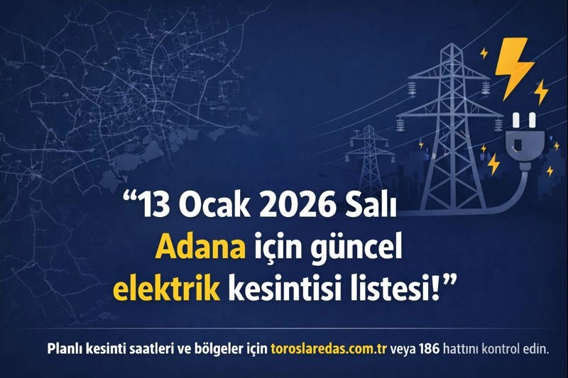 Adana elektrik kesintisi ve Toroslar Elektrik Dağıtım A.Ş. (Toroslar EDAŞ) elektrik kesintisi listesi araştırmaları yapılıyor. Toroslar EDAŞ şirketinden yapılan açıklamaya göre 13 Ocak 2026 Salı günü Adana'da çeşitli ilçelerinde farklı sürelerde elektrik kesintileri yaşanacak.