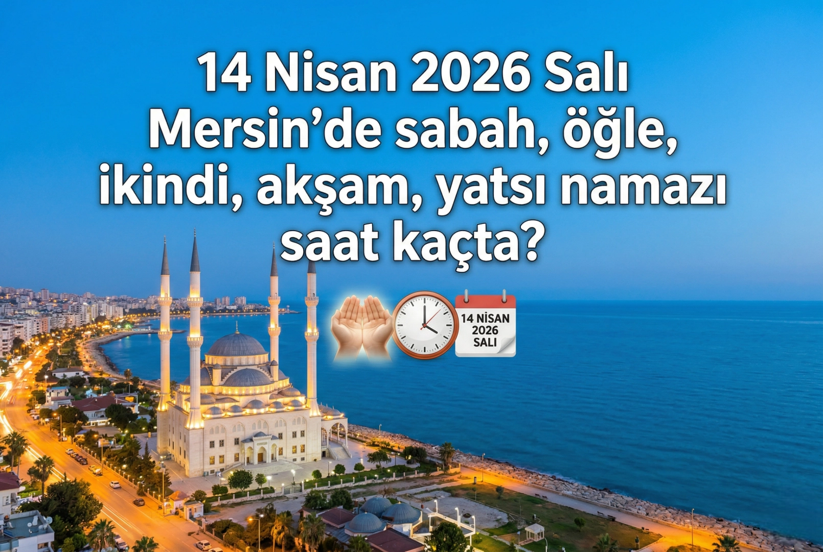 Mersin namaz vakitleri 14 Nisan 2026 Salı || Akli dengesi yerindeki tüm erişkin Müslümanlara günde 5 kez farz kılınan ve İslamiyet'in şartlarından biri olan namaz, kulun Allah'a en yakın olduğu anlardan biri olarak kabul edilir. Abdest alınması ve kıblenin belirlenmesinin ardından, Güneş'in dünyaya konumuna göre belirlenen namaz saatleri, vatandaşlar tarafından sıklıkla araştırılan konular arasında yer alıyor. İşte 14 Nisan 2026 Salı Mersin ezan saatleri, sabah, öğlen, ikindi, akşam, yatsı namaz vakitleri...