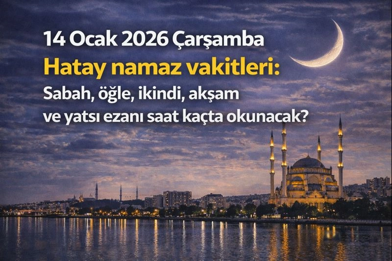 Hatay genelinde ikamet eden vatandaşlar, günlük dini vecibelerini yerine getirmek adına Diyanet İşleri Başkanlığı takvimini esas alıyor. Günlerin uzayıp kısalmasına bağlı olarak güncellenen vakitler kapsamında, 14 Ocak 2026 Çarşamba gününe ait namaz çizelgesi netlik kazandı.