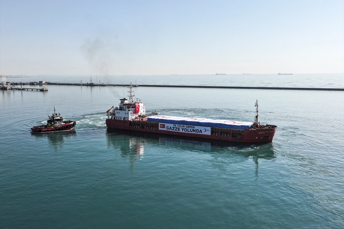 Türk Kızılayın Gazze'ye gönderilmek üzere hazırladığı, yaklaşık 1300 ton insani yardım malzemesi bulunan 19. "İyilik Gemisi", Mersin Uluslararası Limanı'ndan uğurlandı.