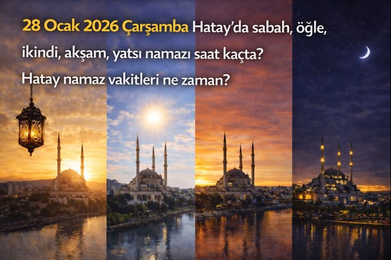 Hatay namaz vakitleri için beklenen veriler açıklandı. 28 Ocak 2026 Çarşamba günü ibadetlerini vaktinde yerine getirmek isteyen vatandaşlar için Diyanet İşleri Başkanlığı takvimine göre; imsak, güneş, öğle, ikindi, akşam ve yatsı ezan saatleri belli oldu. Hicri 9 Şaban 1447 tarihine denk gelen bu günde Hatay'da namaz saatleri haberimizde...