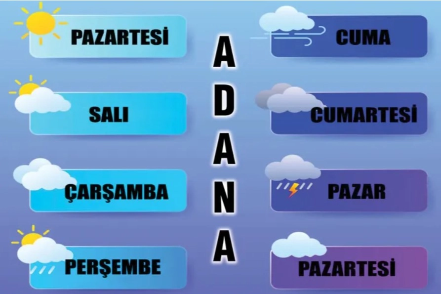 Meteoroloji verilerine göre Adana’da 3 Mayıs Cumartesi günü sağanak yağışlar etkili olacak. Hava sıcaklığı mevsim normallerinde seyrederken, yüksek nem ve zaman zaman kuvvetli rüzgar bekleniyor.