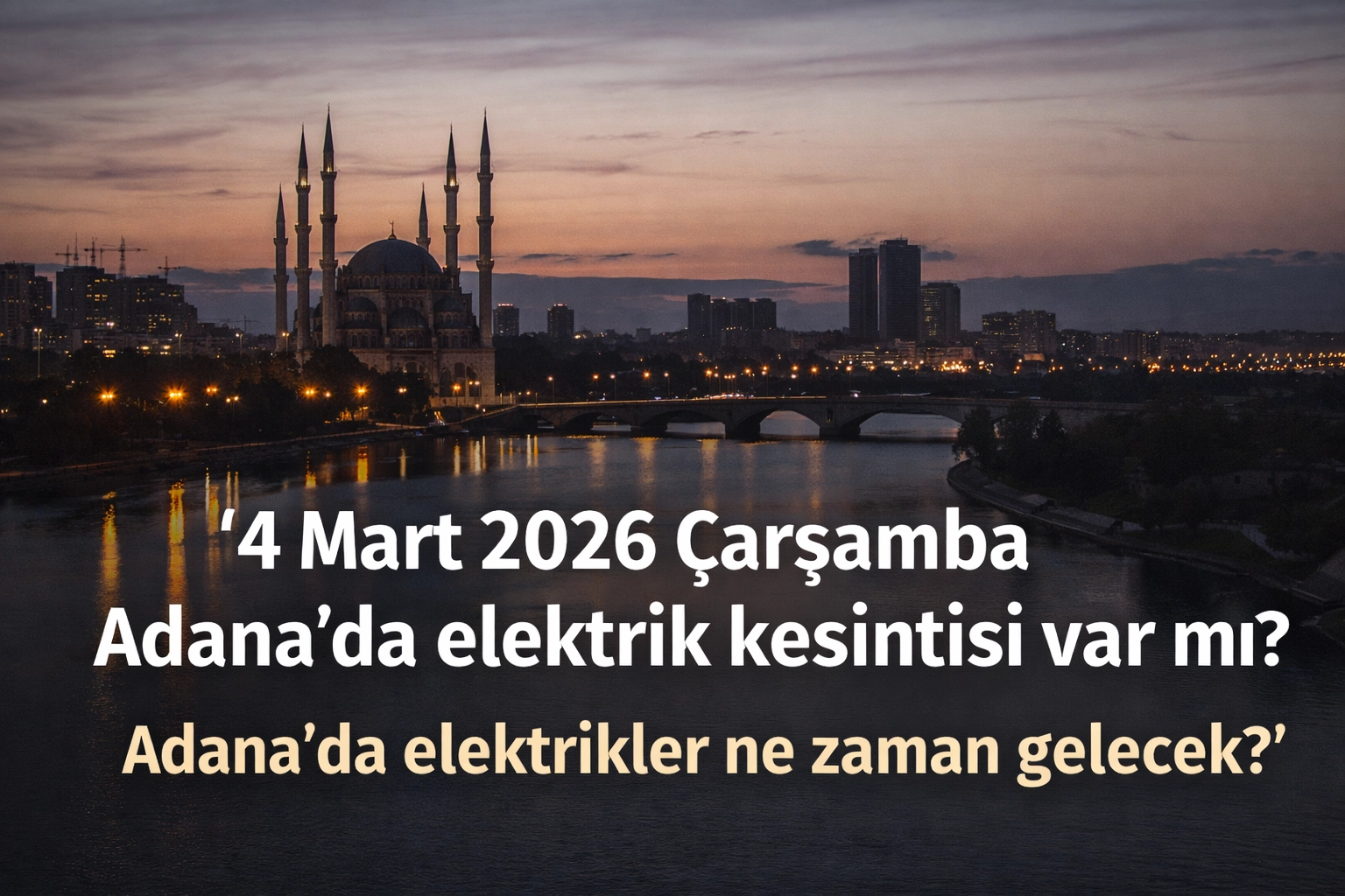 4 Mart 2026 Çarşamba günü, Adana'nın çeşitli bölgelerinde planlı elektrik kesintisi gerçekleşecek. Toroslar EDAŞ tarafından yürütülen altyapı, bakım ve onarım çalışmaları kapsamında kentte enerji akışına geçici süreyle ara verilecek. Toroslar EDAŞ web sitesi üzerinden "Planlı Kesintiler" sekmesinden Adana genelindeki listeye ulaşılabilir. ALO 186 hattı aranarak arıza ve planlı kesinti durumları öğrenilebilir. Toroslar EDAŞ mobil uygulamaları ve SMS bilgilendirme servisinden anlık kesinti verileri alınabilir. İşte 4 Mart 2026 Çarşamba Adana elektrik kesintisi saatleri ve etkilenecek mahalleler…
