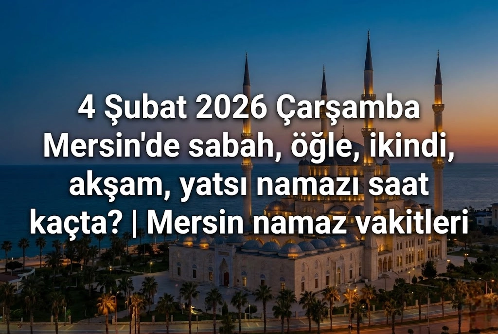 Mersin’de 4 Şubat 2026 Çarşamba günü namaz vakitleri, ibadetlerini vaktinde yerine getirmek isteyen vatandaşlar tarafından araştırılıyor. Diyanet İşleri Başkanlığı tarafından yayınlanan takvime göre; sabah, öğle, ikindi, akşam ve yatsı ezanı saatleri belli oldu. İşte 4 Şubat Mersin için vakit vakit namaz saatleri...