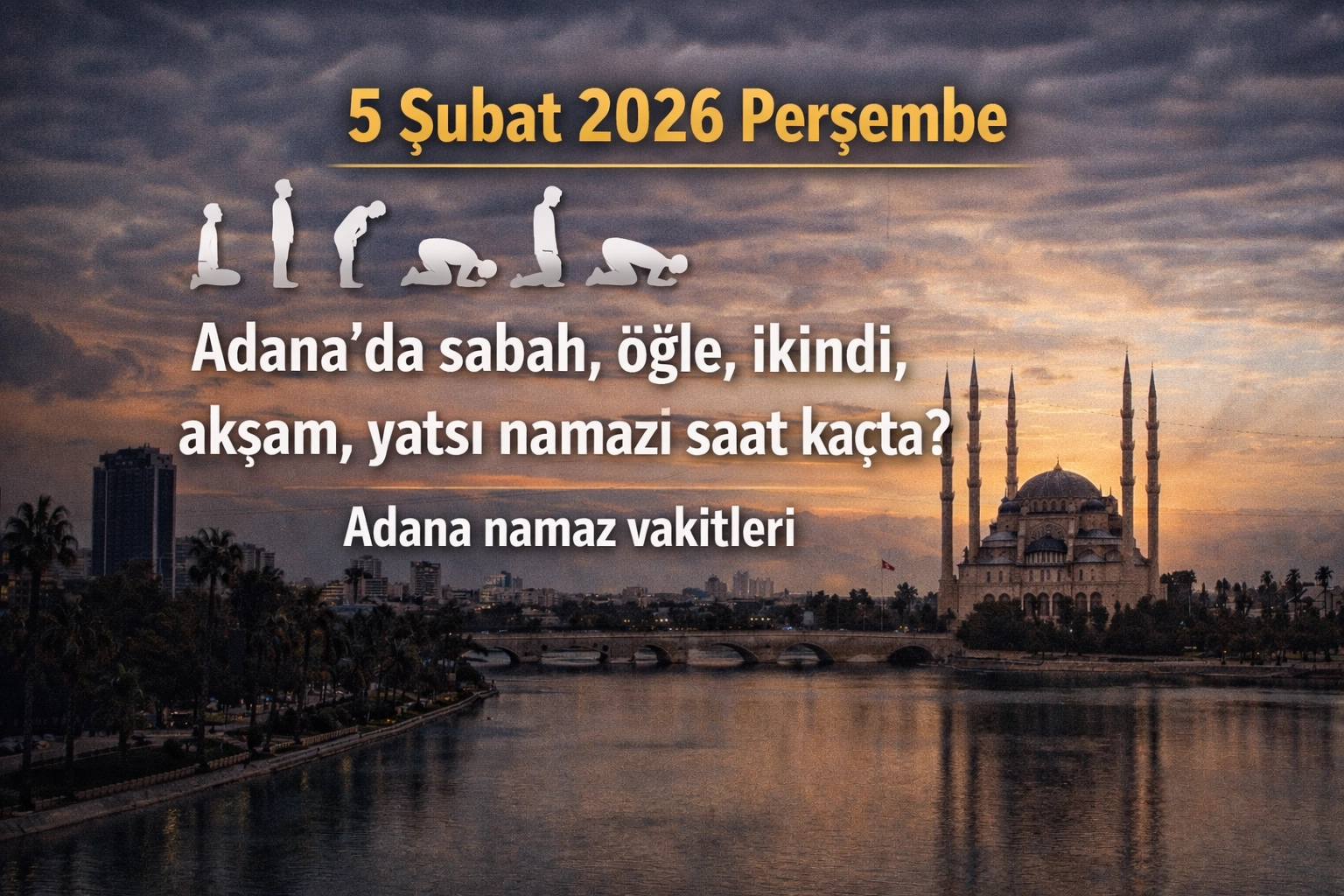 Adana'da yaşayan vatandaşlar namaz ibadetlerini yerine getirmek için 5 Şubat Perşembe günü ezan saatlerini araştırıyor. Hicri takvime göre 17 Şaban 1447 tarihine denk gelen bu günde imsak, güneş, öğle, ikindi, akşam ve yatsı vakitleri belli oldu.