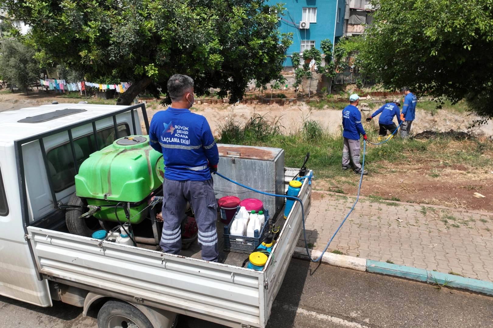 Adana Büyükşehir Belediyesi'nin vatandaşların rahatı ve huzuru için günün 24 saati 450 personel ve 120 ilaçlama aracı ile yaptığı çalışmaları güçlendirerek sürdürüyor.