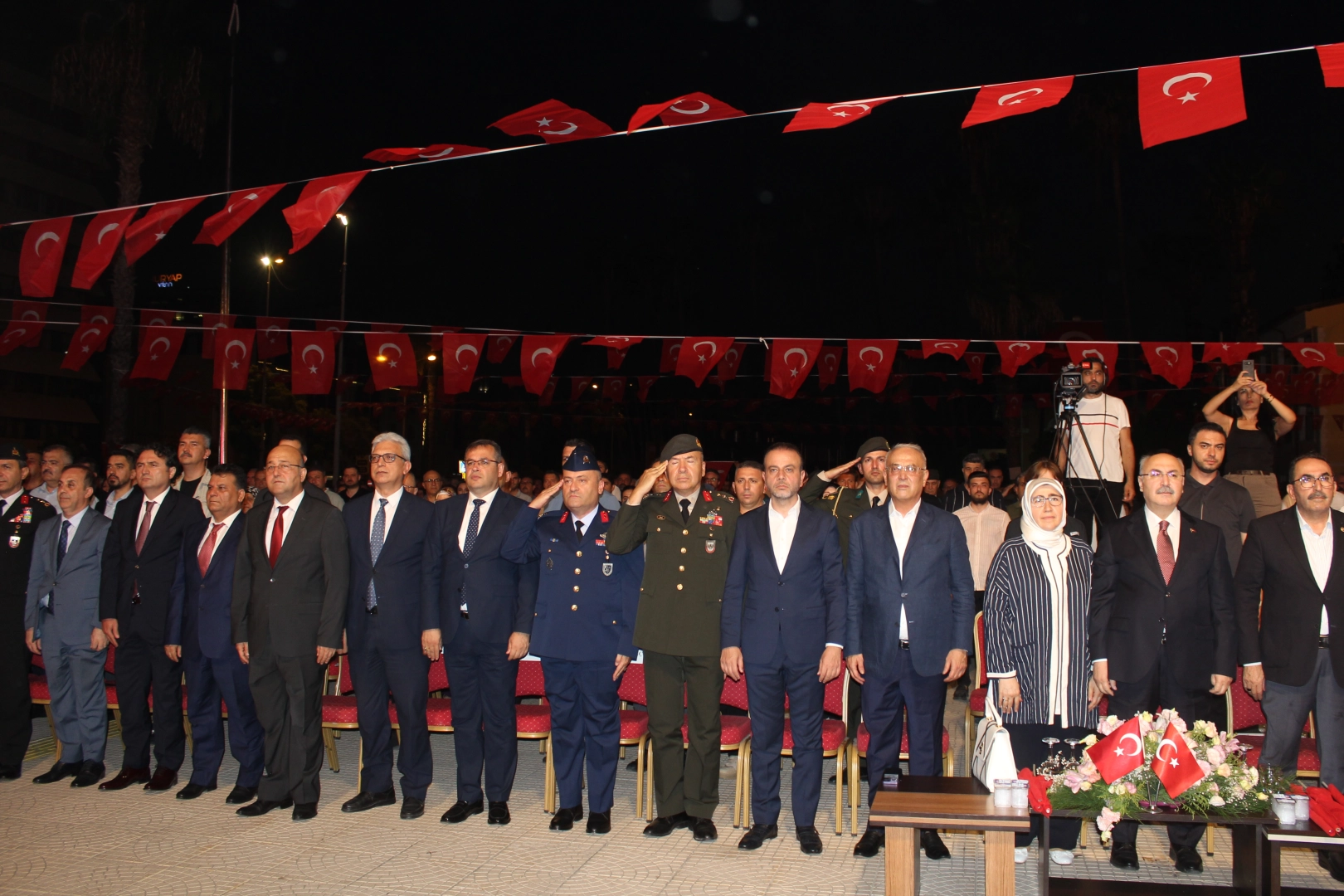 Köşger, “Bu millet vatan söz konusu olduğunda bir anda aynı safta, aynı cephede buluşan necip bir millettir”Programda konuşan Adana Valisi Yavuz Selim Köşger, “15 Temmuz bize şu hakikati bir kez daha göstermiştir ki bu millet asil bir millettir. Bu millet çok cesur bir millettir. Bu millet vatan söz konusu olduğunda bir anda aynı safta, aynı cephede buluşan necip bir millettir. Vatan ve bayrak sevgisini, ezan sesini tüm değerlerin üstünde tutan, bağımsız ve özgür yaşama gayesinden hiçbir zaman taviz vermeyen Türk milleti, Malazgirt'te, Çanakkale'de, Sakarya'da, Dumlupınar'da olduğu gibi o karanlık gecede de tek yürek olmuş, millî iradenin üzerinde hiçbir fani gücü tanımadığını göstermiş, istiklal ve istikbalini bir avuç haine teslim etmemiştir. Aziz milletimiz, iç ve dış güçlerin projesi olan, 60 yıl önce harekete geçen, devletimizin en hassas noktalarını bir ahtapot gibi saran, bu ülkenin gençlerini maalesef mankurtlaştırıp paralel bir yapı oluşturan hain Fetullahçı Terör Örgütü'ne milli irade tokadını atarak hak ettiği dersi vermiştir ve bu tokat dünya tarihine geçmiştir. Bu noktada 15 Temmuz'u sadece bir direniş olarak değil aynı zamanda bir uyanış sembolü millet olarak bağımsızlık uğruna nelerden vazgeçebildiğimizi hatırladığımız içimizdeki kahramanlık ateşinin hiç sönmedğini gösteren müstesna bir zaman dilimi olarak düşünüyor. İçimizdeki bu ateşin bağımsızlığımıza, bayrağımıza, ezanımıza uzanacak kirli ellere kırmak, kutsal vatan toprağını korumak için bize güç vereceğine her zaman inanıyorum ” diye ifade etti.