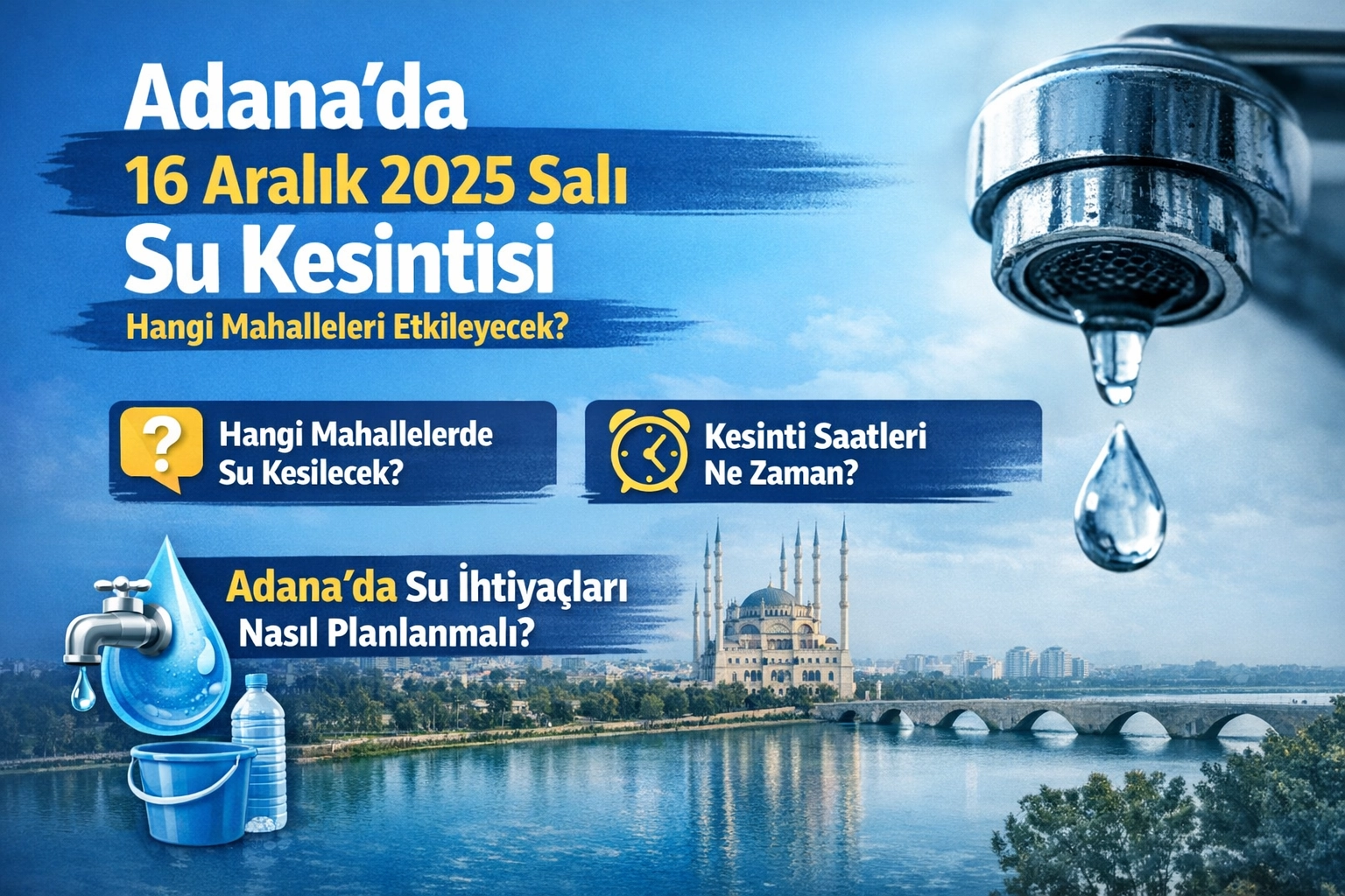 Adana’da bakım, onarım ve iyileştirme çalışmaları nedeniyle bazı bölgelerde su kesintisi yaşanacak. Su arızası veya planlı çalışmalar sebebiyle etkilenmesi beklenen ilçeler ve mahalleler ile kesinti saatleri şöyle... Adana su kesintisi