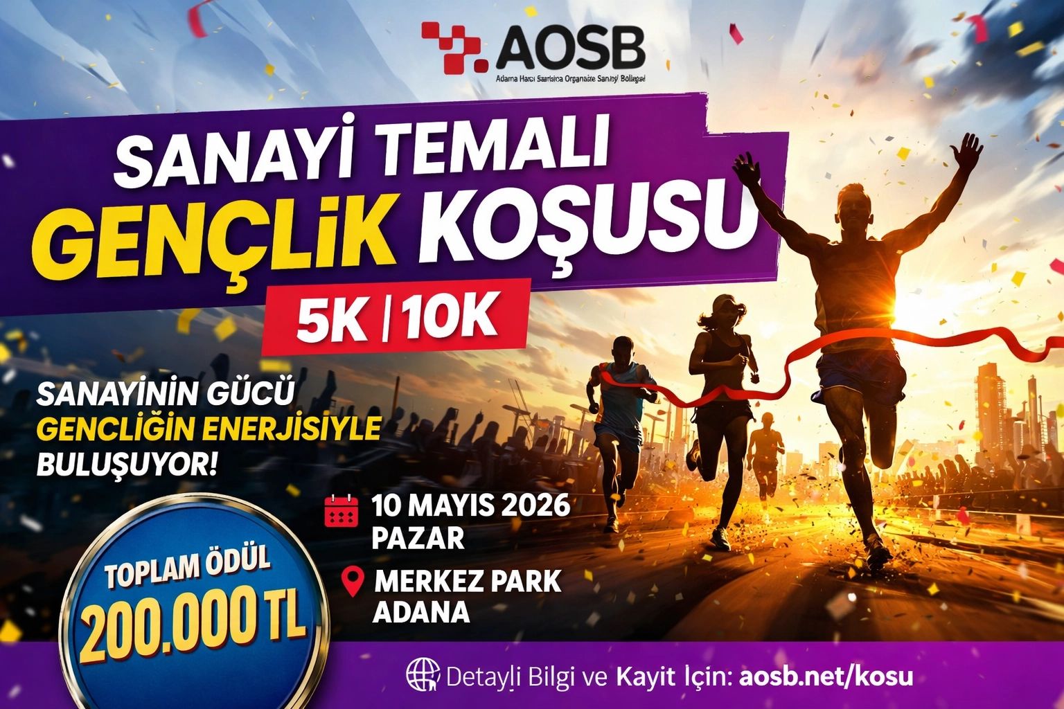 Adana’da spor ve sanayi dünyasını bir araya getiren önemli bir etkinlik düzenleniyor. Adana Hacı Sabancı Organize Sanayi Bölge Müdürlüğü tarafından geleneksel Spor Şenlikleri kapsamında organize edilen Sanayi Temalı Gençlik Koşusu, 10 Mayıs 2026 Pazar günü Adana Merkez Park’ta gerçekleştirilecek.