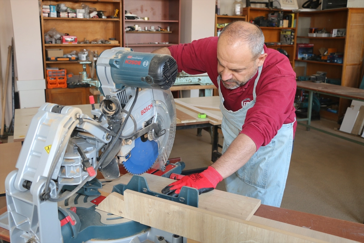 "AĞAÇLA UĞRAŞIP ŞEKİL VERMEYİ SEVİYORUM"Yaptığı çalışmalara ilişkin bilgi veren Okul Müdürü Şehmus Yaman, üretim yapmaktan keyif aldığını belirterek süreci anlattı. Yaman, "Ağaçla uğraşıp şekil vermeyi seviyorum. Müdür yardımcılarımızın odasında masa ve sehpanın olmadığını görünce bunları yapabileceğimi düşünerek başladım ve arkası geldi. Hemen hemen her odaya masa, sehpa, klasör dolabı yaptım. Aynı zamanda da öğrencilere kütüphane yaptım" dedi. Çalışma saatlerine değinen Yaman, "Fırsat buldukça öğretmen ve öğrenciler okuldan çıktıktan sonra burada kalıp çalışmalarımı yapıyorum. Özellikle hafta sonları ve tatillerde daha fazla çalışıyorum. Üretmek güzel, ben o hazzı yakalıyorum. Ürettikçe daha fazla üretme isteğim oluyor" diye konuştu.