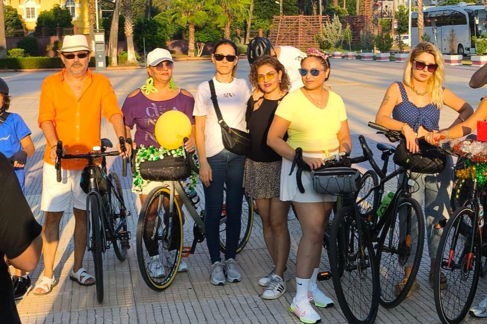 ÇOCUKLARIYLA KATILDILARÇocuklarını bisikletlerinin arkasına taktıkları çocuk arabasıyla turlarını gerçekleştiren bir aile zaman zaman bisiklet üzerinde el ele tutuşarak turlarını sürdürdü. Renkli görüntülerin oluştuğu bisiklet turunda kadınların rengarenk kıyafetler giyerek bisiklet sürdükleri dikkatlerden kaçmadı. Kadın katılımcılar, renkli elbiseleri, çiçekli şapkaları ve aksesuarlarla süsledikleri bisikletleriyle etkinliğe hem estetik hem de eğlenceli bir hava kattı.
