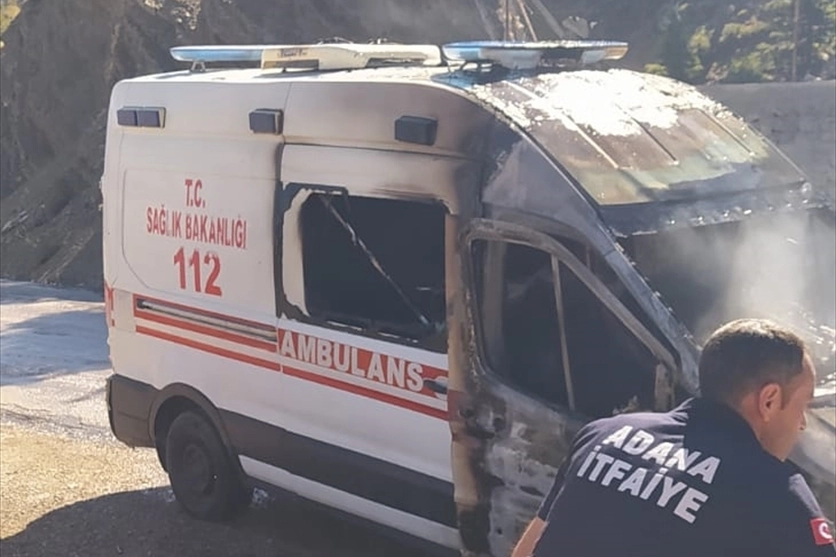 Adana'da seyir halindeyken motor kısmında yangın çıkan ambulans kullanılamaz hale geldi.