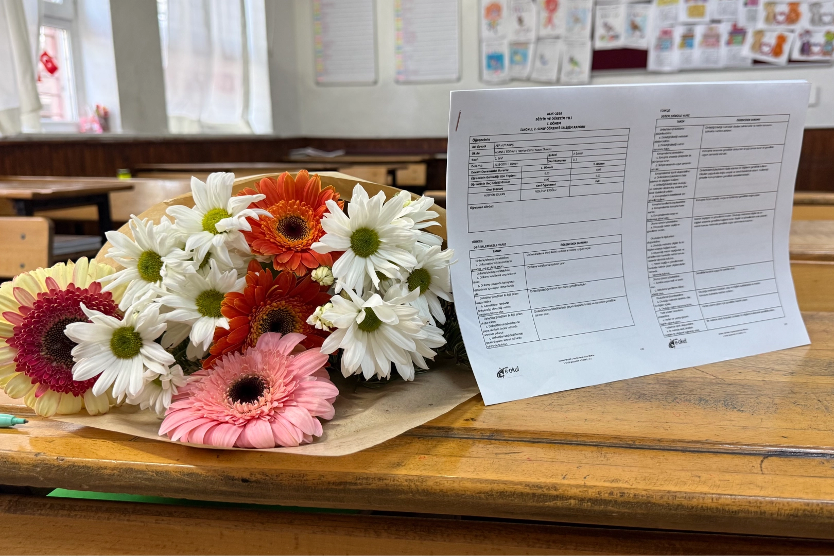 Olayın yankıları sürerken Seyhan ilçesindeki Hayriye Kemal Kusun İlkokulu'nda eğitim gören kardeşlerin sınıfında hüzünlü anlar yaşandı. Okulda 2. sınıfta eğitim gören Ada ile anasınıfına giden Mert'in karneleri de çiçeklerle birlikte sıralarına bırakıldı. Çoğu velinin olaydan etkilenmesin diye çocuklarını okula göndermediği öğrenilirken iki kardeşin karnelerinin iyi olduğu görüldü.