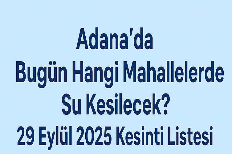 Adana’da 29 Eylül 2025 Pazartesi günü planlı bakım, onarım ve iyileştirme çalışmaları nedeniyle birçok ilçede su kesintisi yapılacak. Ceyhan, Çukurova, Seyhan, Yüreğir, Kozan ve Sarıçam başta olmak üzere şehir genelinde bazı mahallelerde suyun verilemeyeceği saatler belli oldu. Vatandaşlar, kesintiler sırasında günlük su ihtiyaçlarını önceden planlamalı ve gerekli tedbirleri almalı. İşte Adana’nın ilçelerine göre Adana su kesintisi programı ve saatleri...