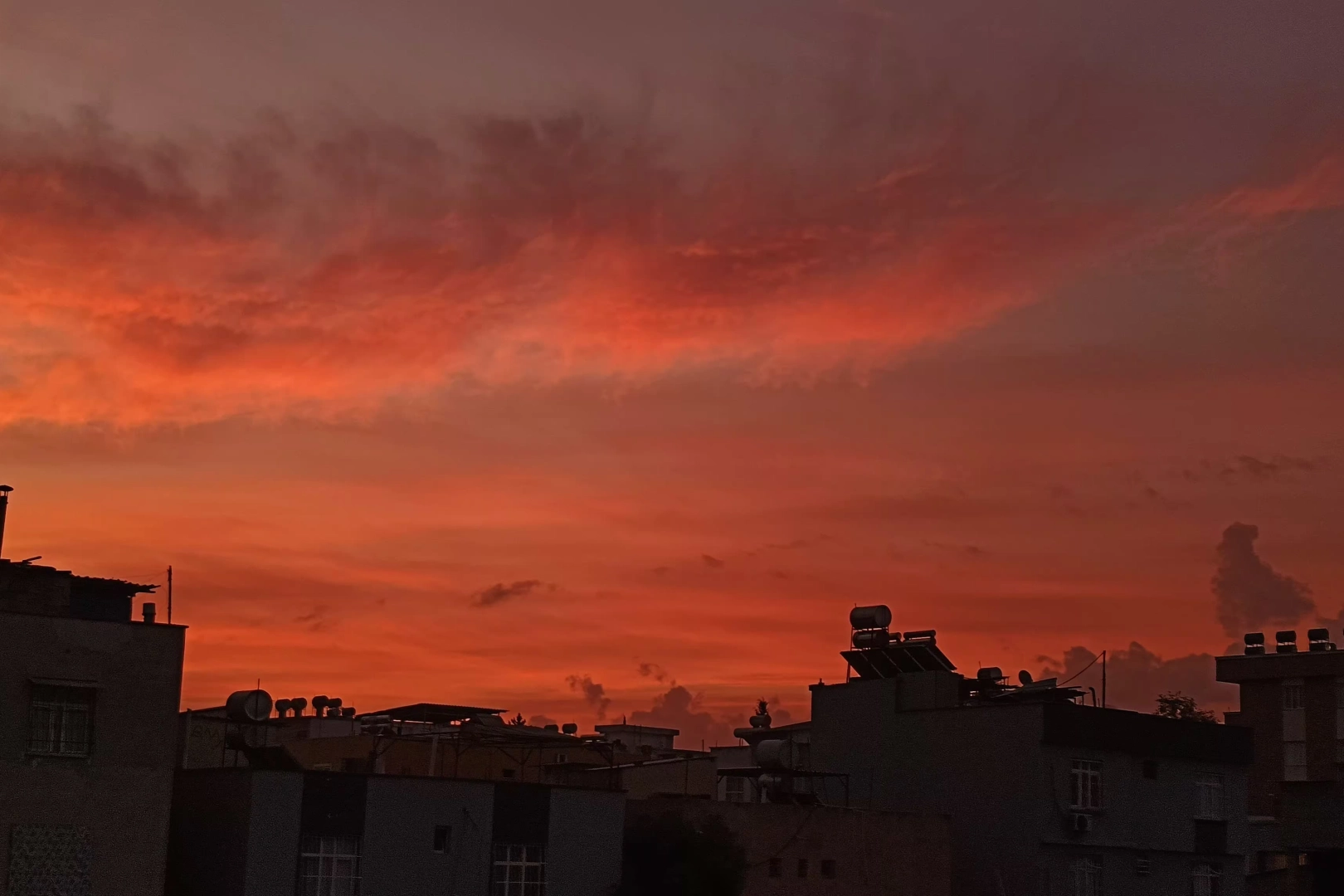 Adana, dün akşam saatlerinde eşsiz bir manzaraya tanık oldu. Gün batımıyla birlikte kentin üzerine çöken kızıl renkler, gökyüzünü adeta alev alev yandıran bir tablo oluşturdu. Bu doğa olayı, vatandaşları hayranlıkla izletti.