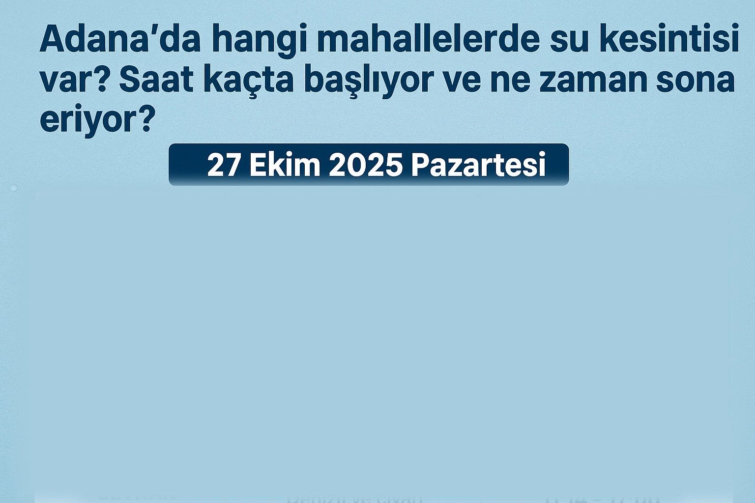 Adana’da 27 Ekim 2025 Pazartesi günü, bakım, onarım ve iyileştirme çalışmaları nedeniyle bazı ilçelerde su kesintisi yaşanacak. Şehir genelinde farklı mahallelerde belirlenen saatler arasında su hizmeti geçici olarak duracak. İşte ilçelere ve mahallelere göre Adana su kesintisi listesi: