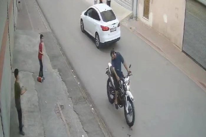 Olay, Seyhan ilçesi Şakirpaşa Mahallesi Onur Caddesi'nde meydana geldi. Yol kenarında 3 çocuk uçurtma uçurduğu sırada uçurtmanın ipi, caddeden motosikleti ile geçen sürücünün kafasına takıldı. Kontrolünü kaybeden sürücü kaza yaparak yere düştü. Çocuklardan ikisi kaza yerinden uzaklaşırken, sürücü çevredekilerin yardımıyla ayağa kalktı. O esnada hala olay yerinde bulunan çocuğun üzerine yürüyerek tepki gösteren motosiklet sürücüsü, yerde bulunan uçurtmayı tekmeleyerek parçaladı. O anlar ise saniye saniye görüntülendi.