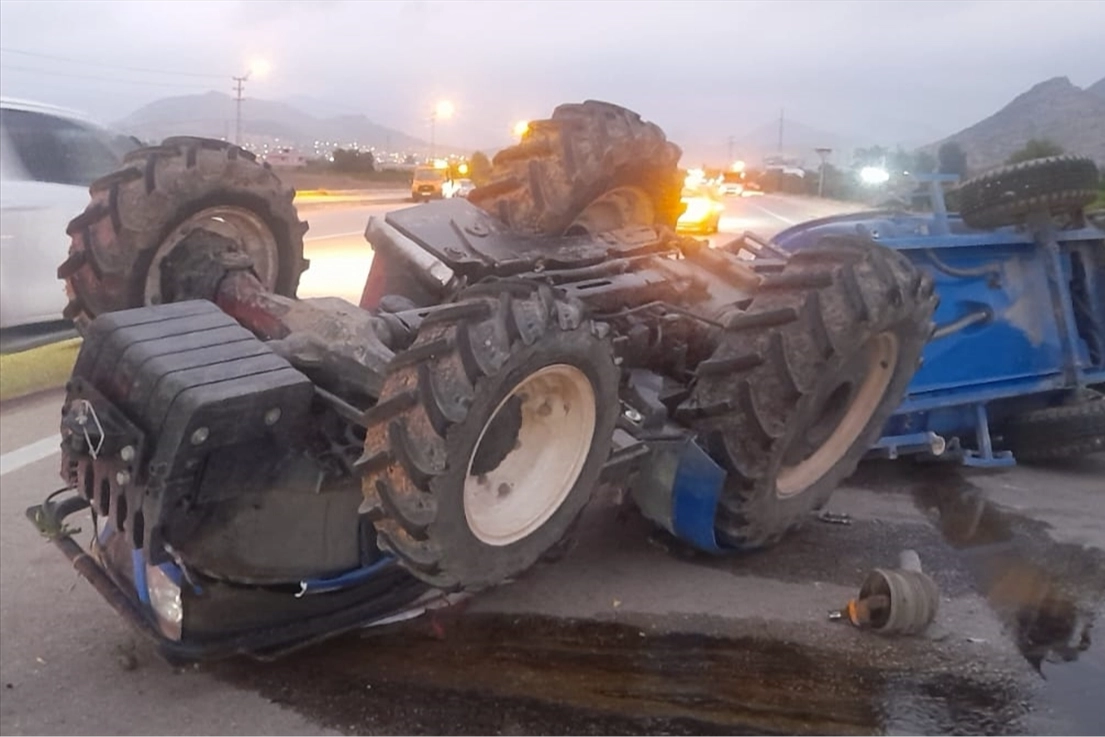 Neşet A. (61) idaresindeki 01 ADN 966 plakalı traktör, Emrah Y. (50) yönetimindeki 34 AP 0724 plakalı otomobille Sanayi Sitesi civarında çarpıştıktan sonra devrildi.