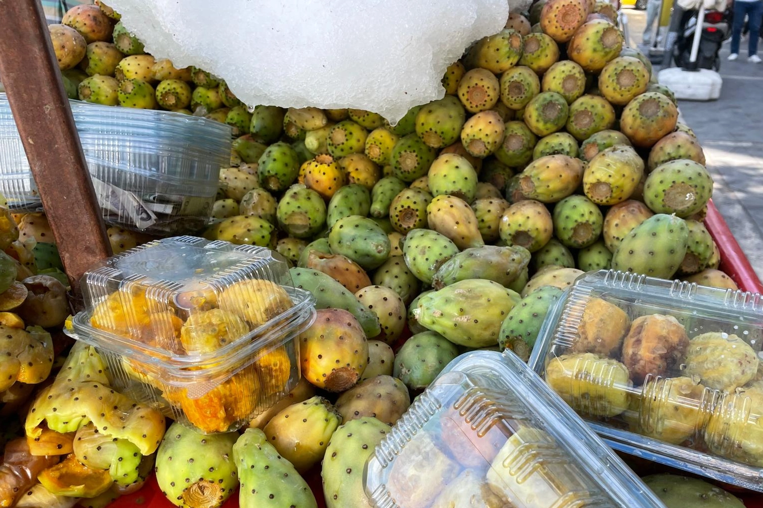 Üzerindeki dikenli kabuk tabakası temizlenerek seyyar tezgahlarda buz kalıpların arasında soğutularak satılan organik dikenli incir, sıcak havanın hakim olduğu şehirde serinlemeye çalışan vatandaşlar tarafından sevilerek tüketiliyor.