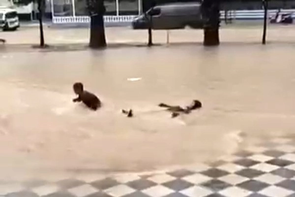 NEHRE DÖNEN YOLDA YÜZEN ÇOCUKLAR GÖRENLERİ ŞAŞIRTTISağanak yağışla birlikte bir anda sular altında kalan yolları fırsat bilen bazı çocuklar, adeta birer yüzücü gibi nehir gibi akan suyun içinde yüzmeye çalıştı. O anlar vatandaşlar tarafından cep telefonu kameralarıyla kaydedildi.
