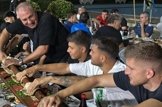 Antrenman sonrası bir araya gelen mavi-lacivertli futbolcular, Adana kebabı ziyafeti çekti.