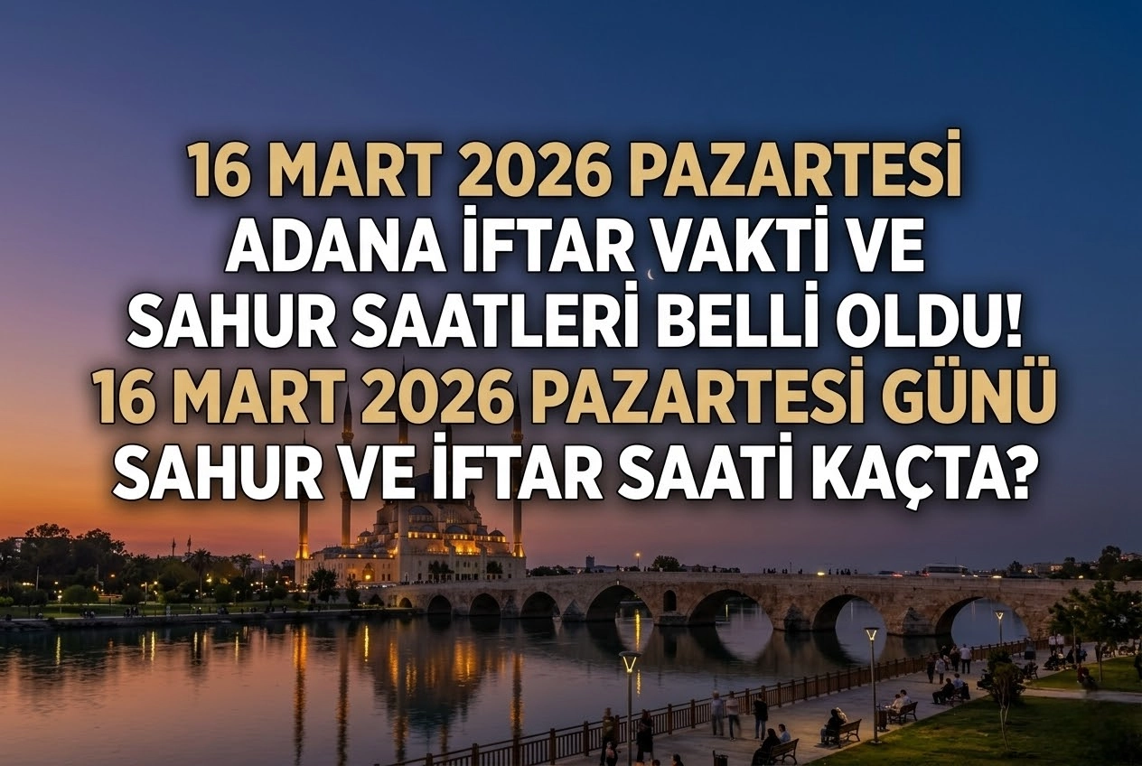 ADANA İFTAR VAKTİ VE AKŞAM EZANI NE ZAMAN?Gün boyunca sabırla iftar saatini bekleyen Adanalılar, akşam ezanının okunmasıyla birlikte oruçlarını açacak. Peki, 16 Mart 2026 Pazartesi günü Adana'da iftar ne zaman? Paylaşılan takvime göre 16 Mart Pazartesi günü Adana iftar vakti saat 18:53 olacak. Akşam ezanının okunmasıyla birlikte binlerce kişi aynı anda iftar sofralarında buluşacak. İftarın ardından yatsı namazı ve teravih ibadeti için belirlenen saat ise 20:08.