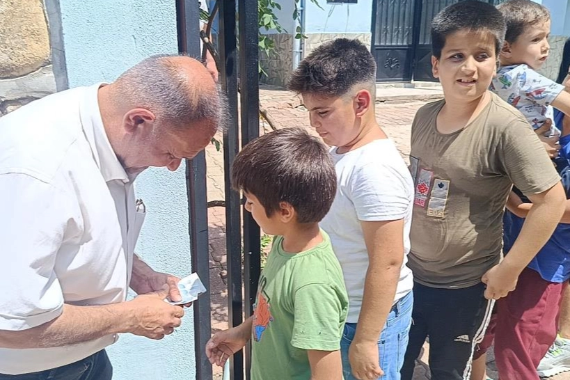 Her Ramazan ve Kurban Bayramı'nın ikinci günü saat 14.00'da çocuklarla bayramlaşma etkinliği gerçekleştiren Ali Baysal ve eşi Zeycan Baysal, çocuklara bayram harçlığı dağıttı.