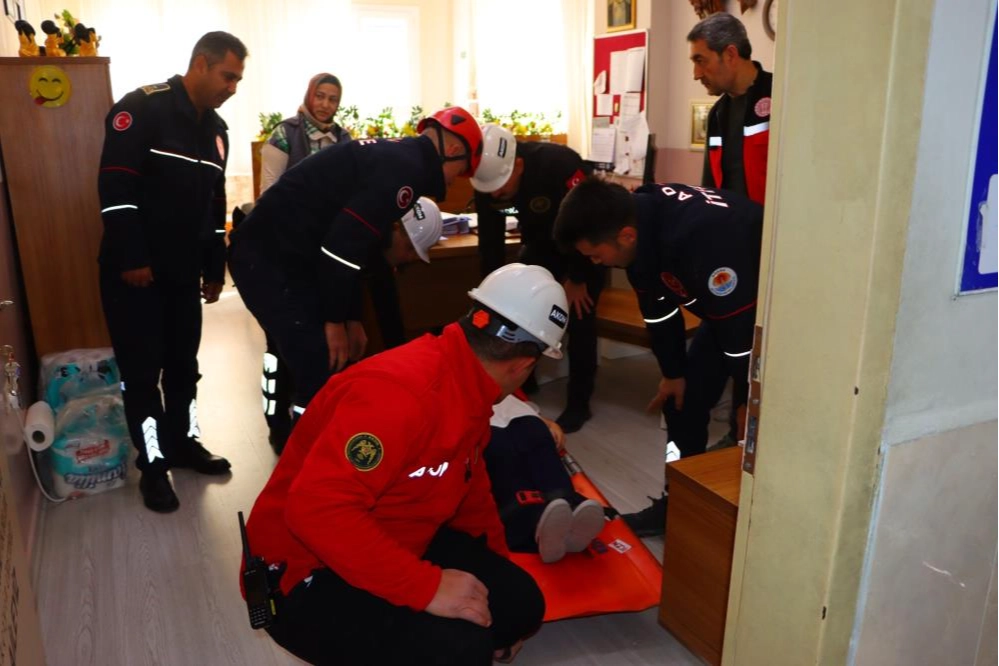 Gerçekçi senaryo ile deprem tatbikatıÖğrencilere teşekkür eden AKOM Müdürü Ali Güven, "Deprem ilimizin ve ilçemizin gerçeği. Bununla ilgili depremi engelleyemeyiz ama eğitimlerle zararı azaltabiliriz. Önce deprem anında sağlam bir nesnenin yanında bekledik, ardından okulu hızlı ve güvenli bir şekilde tahliye ettik. Başımızı tutarak, merdivenlerde duvar kenarlarından gitmeyerek güvenli alanlara geçtik. Senaryo gereği itfaiye ve CANKUR ekiplerimiz yaralılarımızı kurtardı. Başarılı bir tatbikat oldu" dedi.