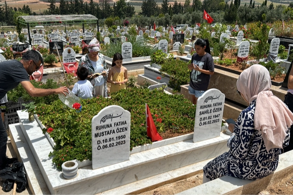 Türk bayraklarıyla donatılan kabirlere çiçek bırakan aileler, Kur'an-ı Kerim okudu, dua etti.Kahramanmaraş merkezli 6 Şubat 2023'teki depremlerde yakınlarını kaybedenler de Kurban Bayramı arifesinde merkez Çukurova ilçesindeki Kabasakal Mezarlığı'na gitti.Çiçek koydukları mezarların başında dua eden aileler, Kur'an-ı Kerim okudu.