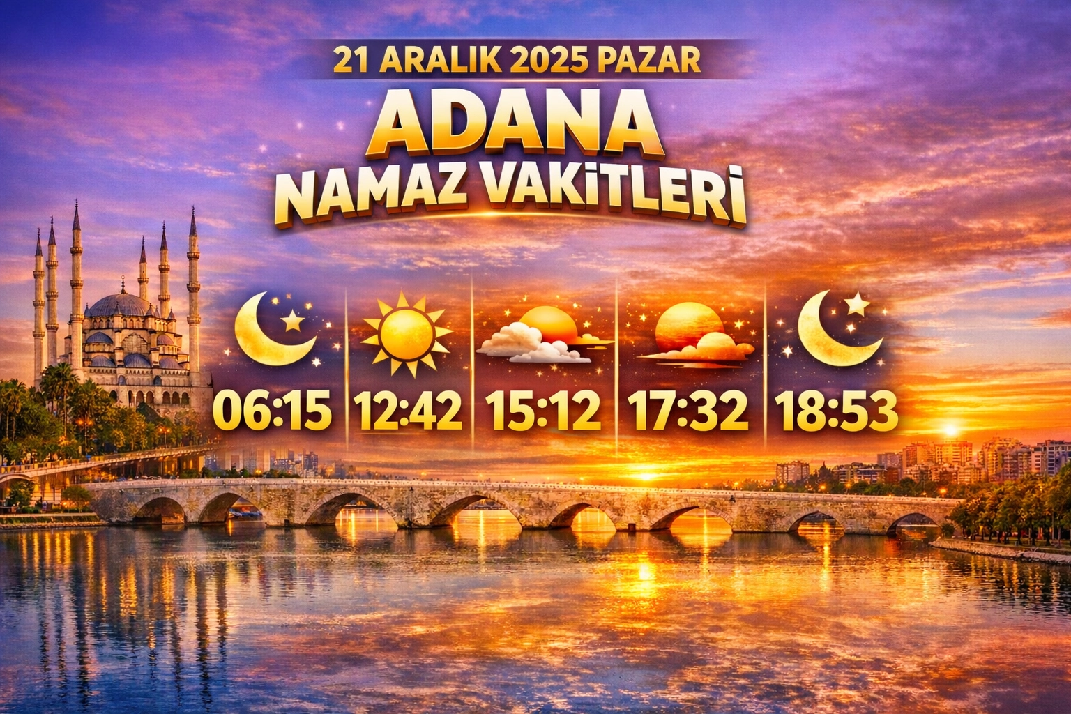 Adana’da 21 Aralık 2025 Pazar günü namaz vakitleri merak ediliyor. Peki sabah namazı saat kaçta? Öğle ve ikindi namazları ne zaman kılınacak? Akşam ve yatsı vakitleri hangi saatlerde? Adana’da 21 Aralık 2025 Pazar günü için günün namaz vakitleri belli oldu. Müslüman vatandaşlar, ibadetlerini planlamak için hangi saatlerde namaz kılacağını merak ediyor. Adana namaz vakitleri...